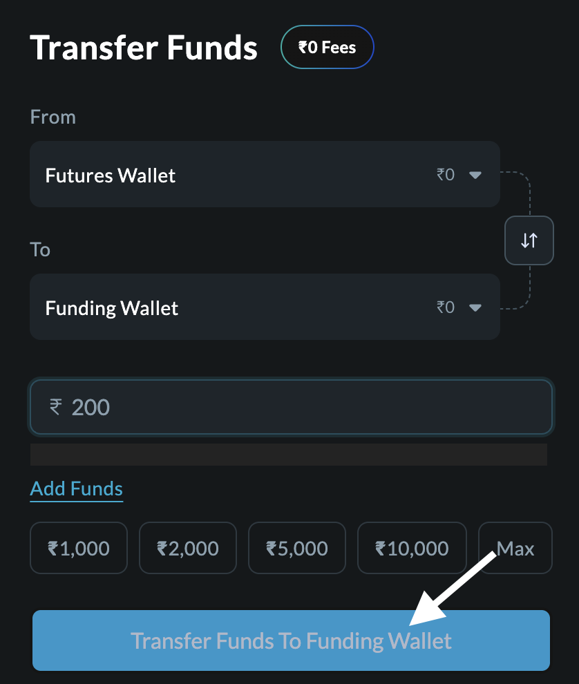 Step 3: Enter the amount you wish to transfer to the INR wallet and click on “Transfer to the Funding wallet.”