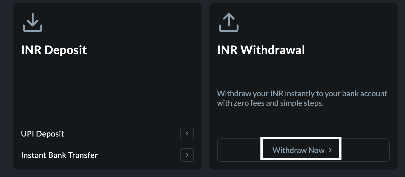 Note: Before requesting a withdrawal, ensure that the funds you wish to withdraw are available in your INR wallet. If your funds are currently in the Futures wallet, kindly transfer the desired amount to your INR wallet before proceeding with the withdrawal.Future Wallet to INR Wallet (Funds Transfer Guide)